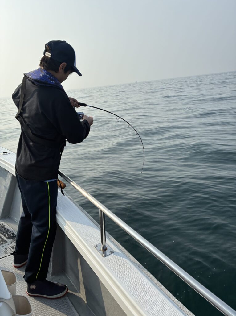 短時間勝負でジアイも短かったですがキャスト→底取り→シャクリ→アワセ→ランディングまで上手に釣られてました☺️